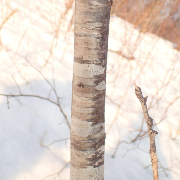 若い枝や幹には凸凹がほとんどなく、 光沢があって丸い皮目があり、 模様や色は、 横縞やまだらに見えます。 老木になると縦に深い割れ目が入り、 ごつごつとした印象の幹になります。