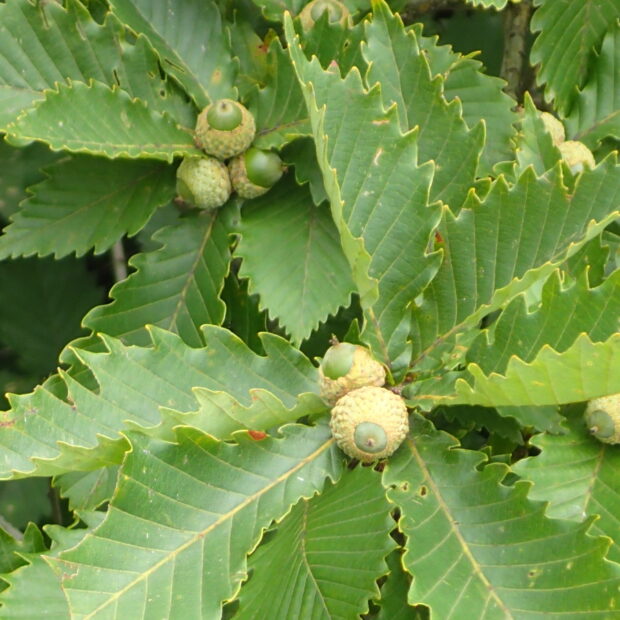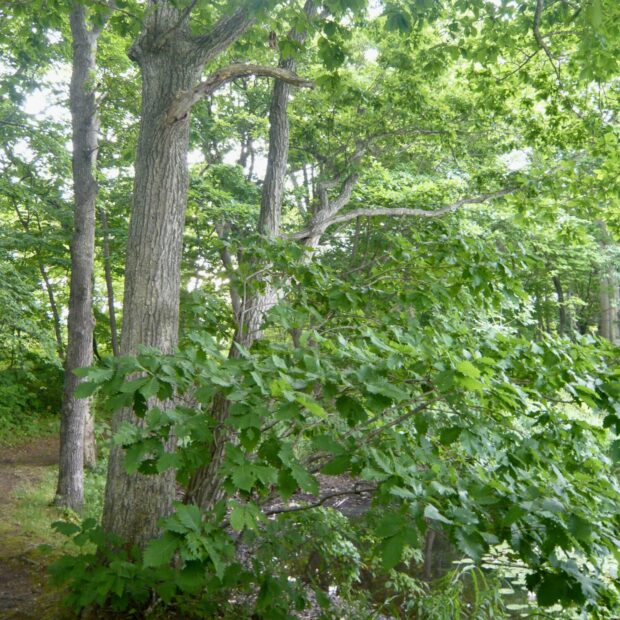 日本各地の山地に分布するどんぐりの木です。 同じ仲間でよく似ているコナラよりも、 背の高さも、 葉やどんぐりも大きいことから、 「オオナラ」とも呼ばれます。 「ミズナラ」と呼ばれるのは、 幹や枝に含まれる水分が多いことからきています。