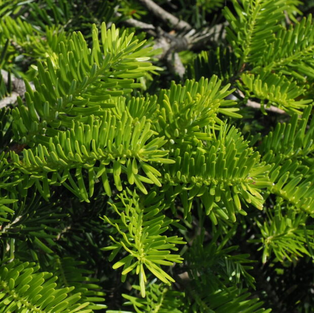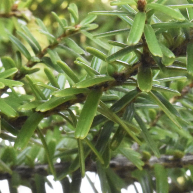 「トガ」とも呼ばれます。 「ツガ」の由来はいろいろで、 「葉が”つぎつぎ”に展開していくこと」「葉の先にトゲがあること(実際にはない)」「長短の葉のつき方から”継ぎ合う”→”つがう”」などがあります。