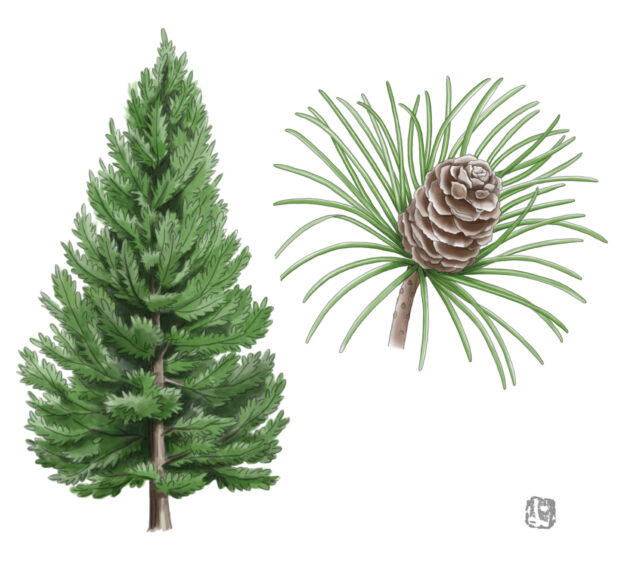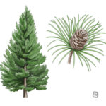 常緑の高木で、 自然にきれいな円錐形に育ちます。 高さは30mくらいになります。