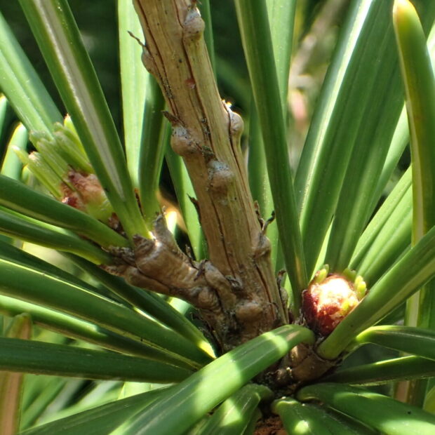 • 松ぼっくりの上からも葉を出す