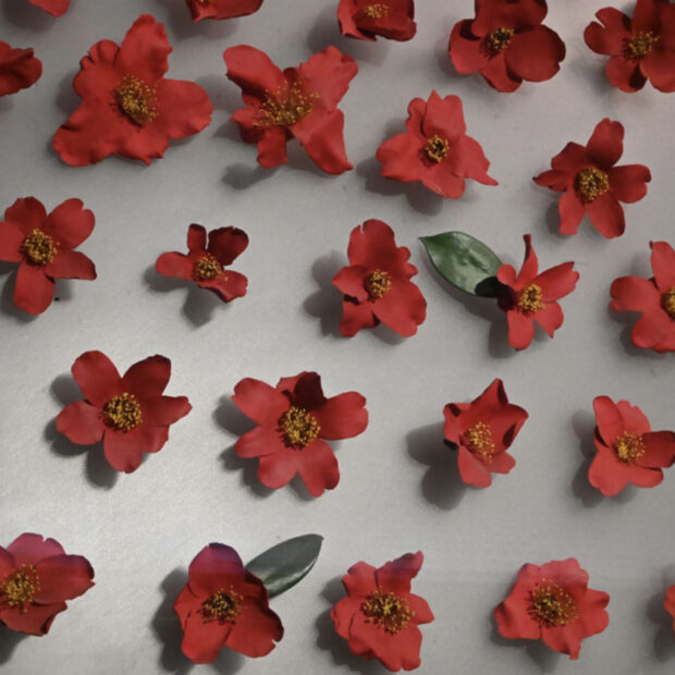 ユキツバキは赤い花をたくさん咲かせ、 華やかなだけではありません。 冬は積もる雪の重みにしなやかな枝で耐え、 緑の葉を元気に保ちます。 雪が解けると雪の重みで曲がっていた枝を起こし、 さらに新しい枝を伸ばしていきます。 その生命力あふれる姿は今日も、 新潟県民に共感を与え、 励まし続けています。