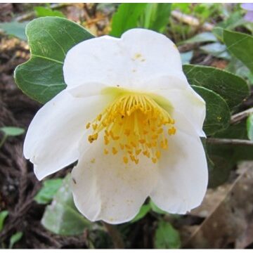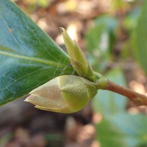 雪の多い日本海側に分布するツバキで、 新潟県の木にも制定されています。 しなやかな枝は、 雪の重みで倒れても折れにくく、 氷点下にはならない雪に埋もれることで寒さから身を守ります。 雄しべの柄が黄色で、 ヤブツバキと区別できます。