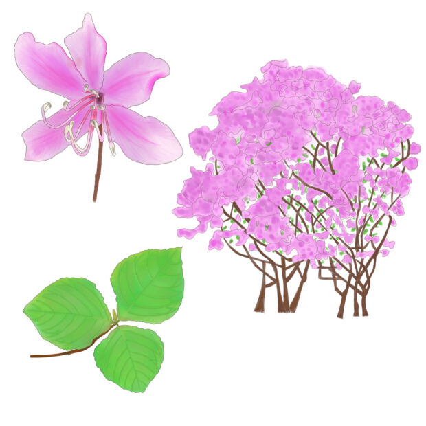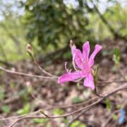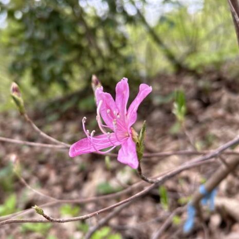 春に、 明るい赤紫色の花を咲かせます。 ミツバツツジに比べて少しピンク色が強く、 雄しべは10本あります。