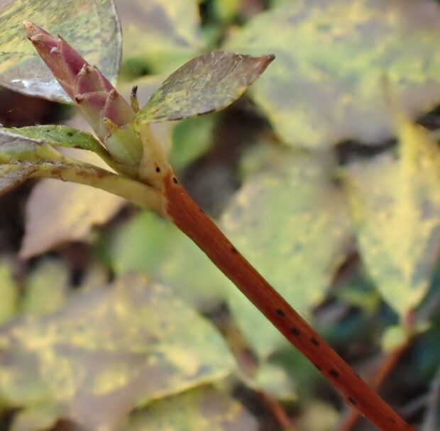 ユキグニミツバツツジは寒さに耐えることができるツツジなので、 冬までにすっかり落葉し、 幹や枝と冬芽だけになって冬を越します。 「寒くなるのはいやだなぁ」なんて思っていない木です。