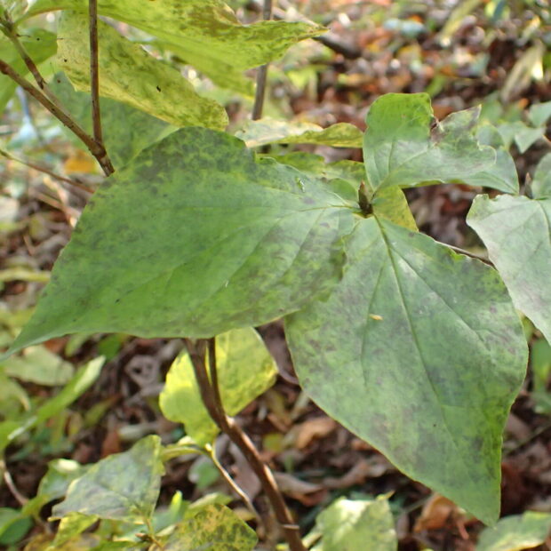 1cmに満たないくらいの小さな果実をつけます。 秋に茶色く熟すと、 タネがパーンと飛び出します。
