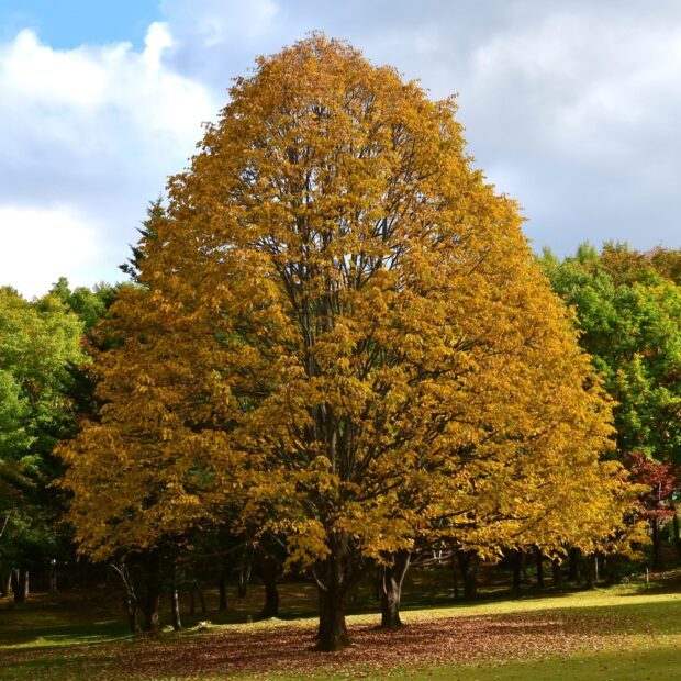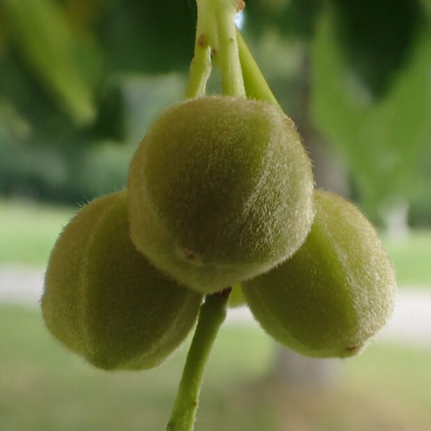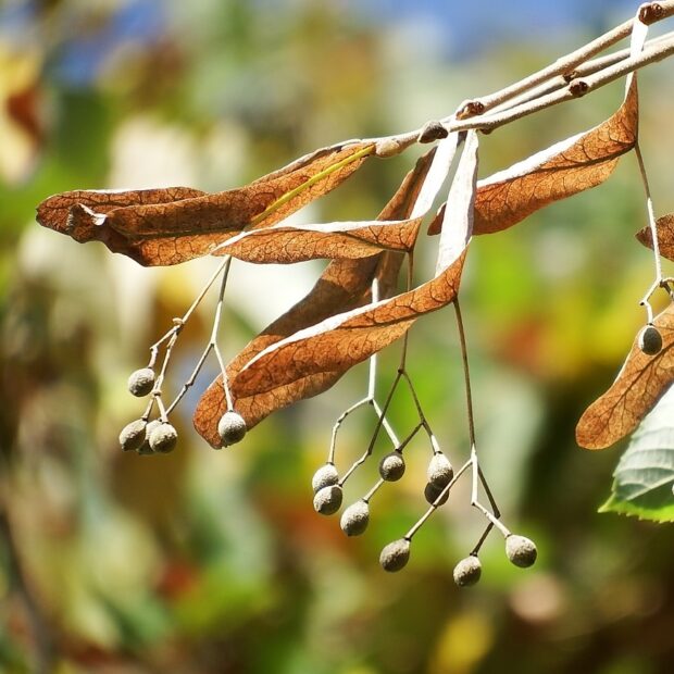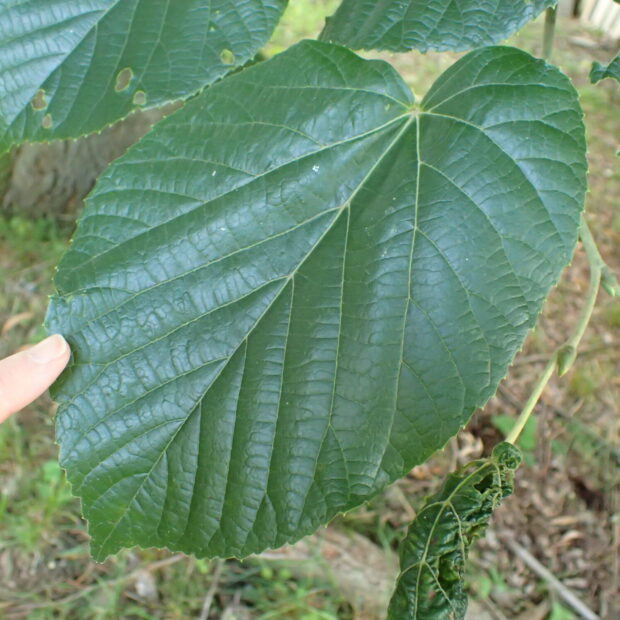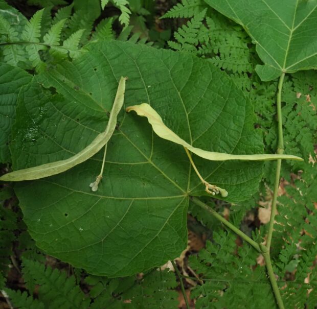 北陸より北の山地に自生するシナノキの仲間で、 シナノキより葉が大きく、 大木になります。 樹皮の繊維から布や縄が作られてきました。 種子の柄にはプロペラがついていて、 回転しながら落ち、 遠くへ運ばれます。
