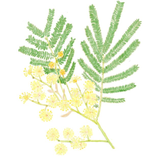 モリシマは日本語ではなく「柔らかい毛が多い」という意味のラテン語からきています。 「アカシア」はマメ科の木のことを指します。