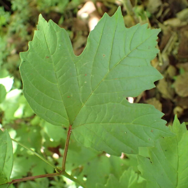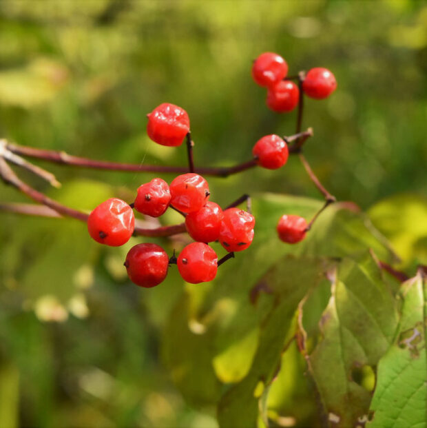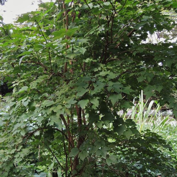 葉はモミジのような形をしています。 秋には赤い実を見ることができます。