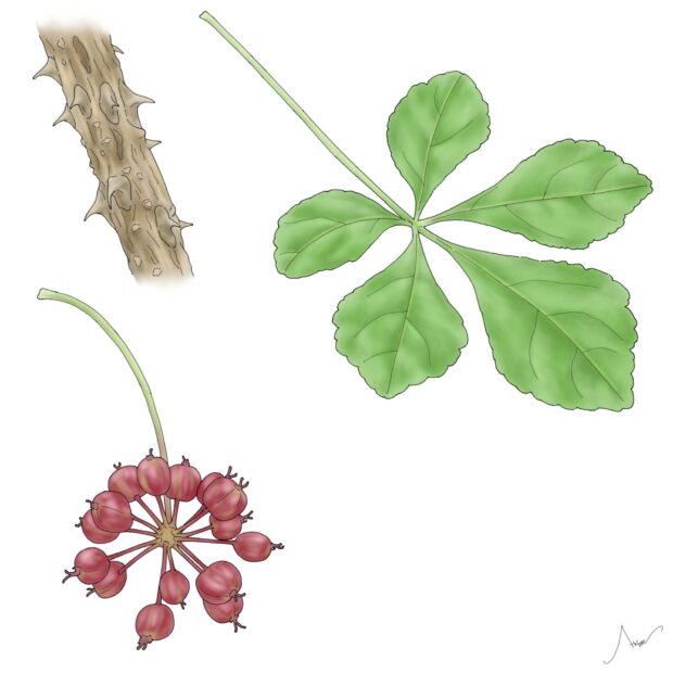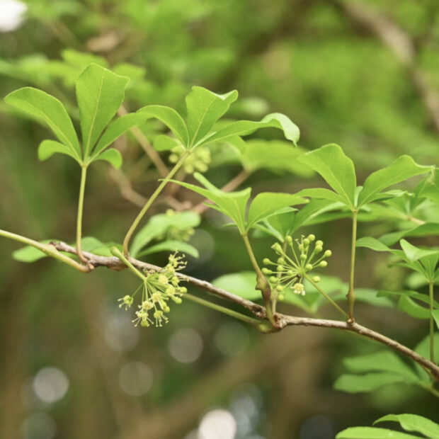 山に生えるウコギなので「ヤマウコギ」とよばれています。