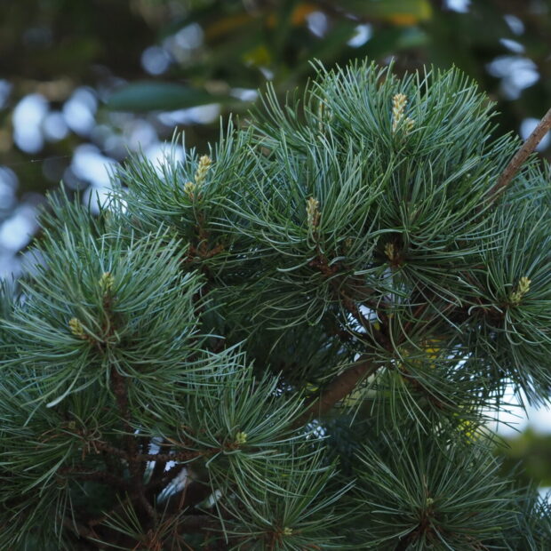 5本の針葉が束になって生えるので「五葉松」と呼ばれます。 ゴヨウマツの中でも、 葉の長さが3〜6cmと短いものが、 葉が小さい意味で「ヒメコマツ」とよばれ、 北海道南部、 本州の主に太平洋側から九州に分布しています。