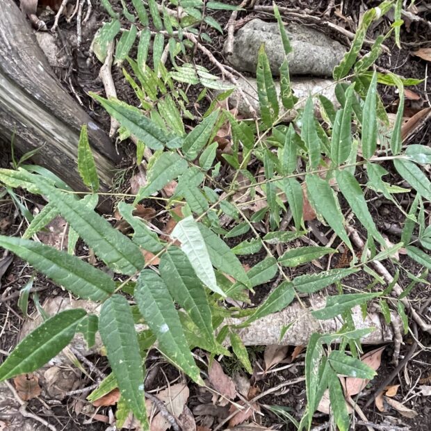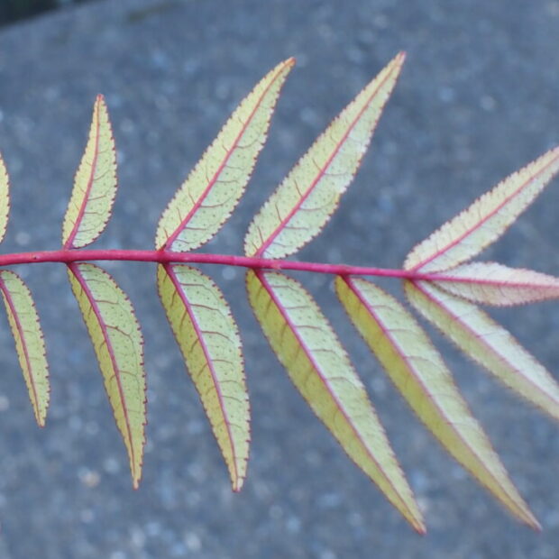 カラスザンショウとニワウルシは葉の様子が似ています。 カラスザンショウの葉の縁には細かいギザギザがありますが、 ニワウルシのギザギザは、 ゆるいものが小さな葉の元の方に2〜3対あるだけです。