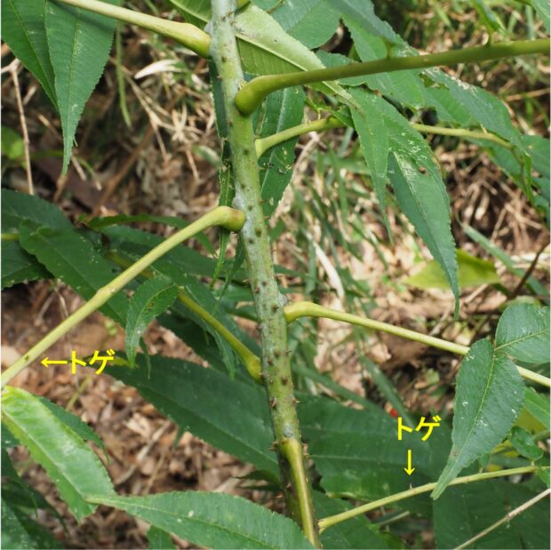名前の通りサンショウの親戚のような木で 確かに葉や花や実の形、 幹や枝がトゲトゲなのはサンショウによく似ています。 ですが、 葉も木の大きさも巨大でサンショウをイメージする人は少ないと思います。 葉をもむとさわやかな香りがします。