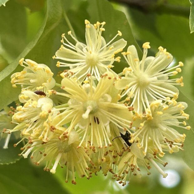 シナノキは、 北陸・関東北部から北海道までの山地に自生するオオバボダイジュとよく似ています。 オオバボダイジュの葉は大きくて、 裏面全体から葉柄にかけてやわらかい星状毛があり、 白っぽい色をしています。 花の雄しべは花びらより短いのが特徴です。 新しい枝、 実、 冬芽もやわらかい星状毛でおおわれています。
