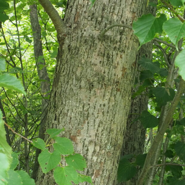 シナノキの樹皮ははがしやすく、 水に強くて丈夫でしなやかなので、 昔から縄やひもなどを作ったりして生活に役立てていました。