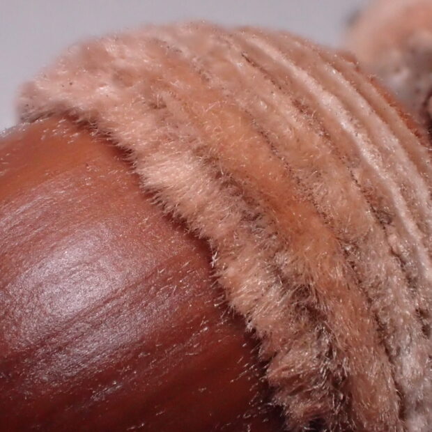 • 横じまのふわふわ帽子(殻斗)をかぶっている