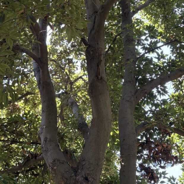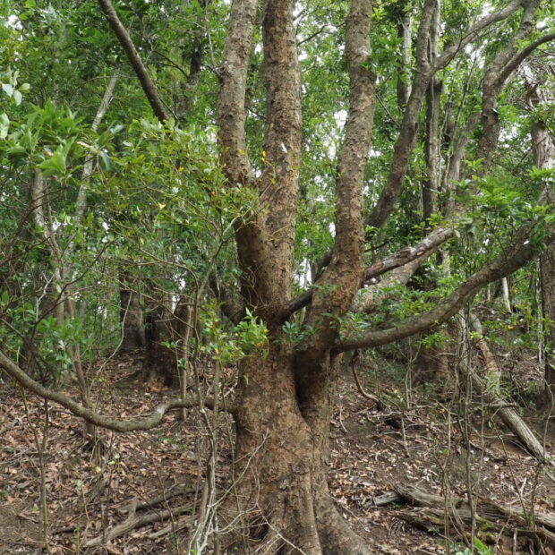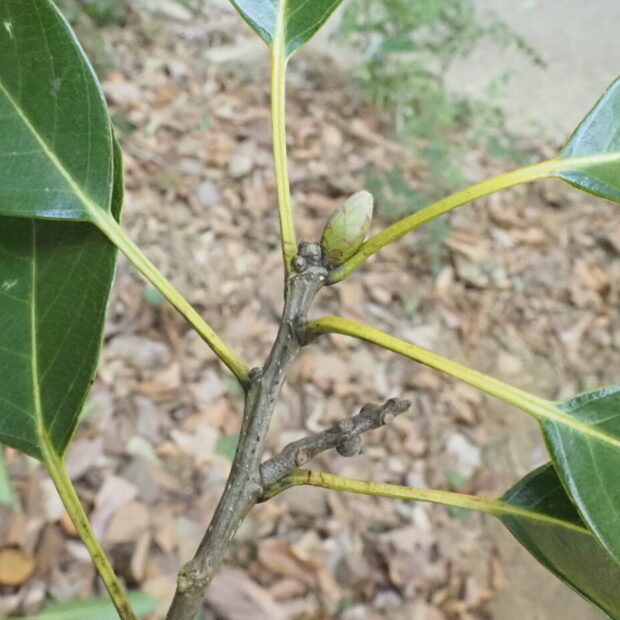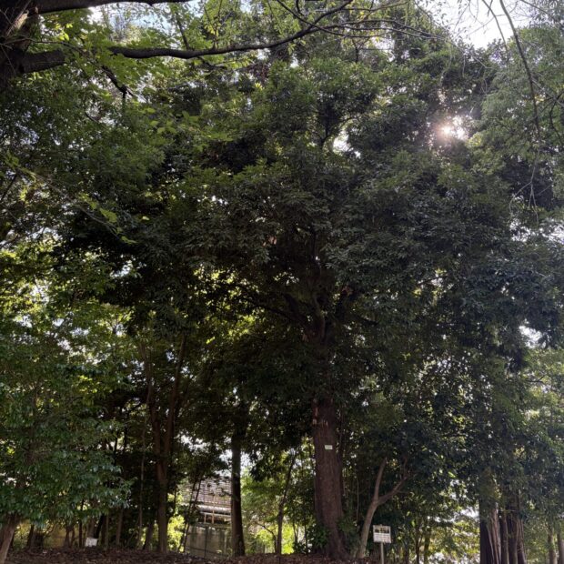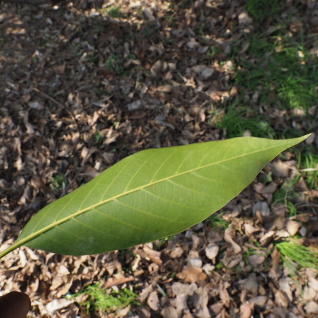 常緑の高木で、 高さは20mほどになります。 大きな葉がたくさんつき、 木の下はしっかりとした日陰になります。