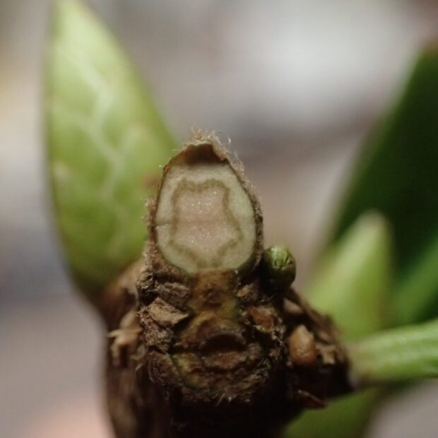 • 枝折れしたところをきれいに切ってみると、 五角形の髄が見える