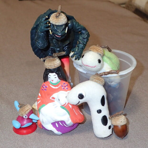どんぐりの本体をこまやアクセサリーにできるのは、 他のどんぐりと同じです。