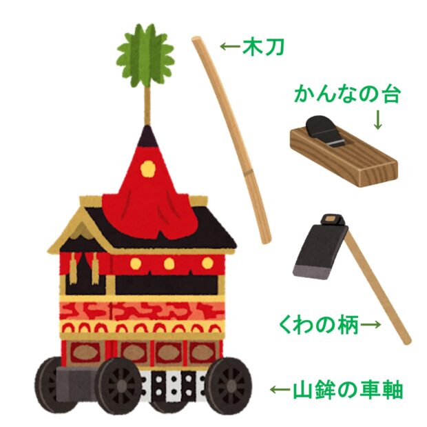 伝統的な京都の祇園祭で通りを行く山鉾の車軸にもアカガシが使われています。