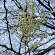 4月花が木全体に咲くので、 全体がうす黄色に見えます。 両性花と雄花が咲きます。
