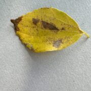 葉の表面はツルツルで、 縁(ふち)には3分の1ぐらいだけギザギザがあります。
