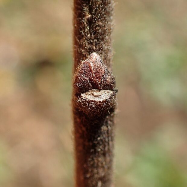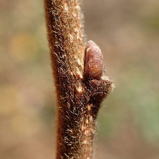 • 新しい枝は毛むくじゃら。 そこにとても小さな冬芽がつきます