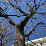 象の皮のような樹皮です。 割れ目が少ないです。
