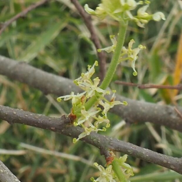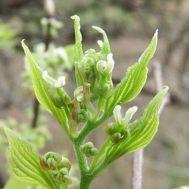 4月花が木全体に咲くので、 全体がうす黄色に見えます。 両性花と雄花が咲きます。