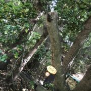黒っぽいです。 小さい木の幹は滑らかですが、 成長すると割れ目が沢山入ります。