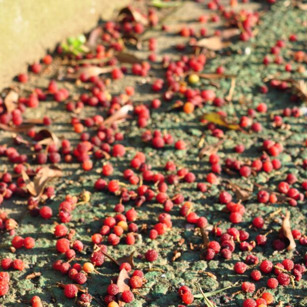 甘い実には、 ムクドリなどの鳥やハナムグリなどの甲虫が食べにやって来ます。 サルなど山の動物たちのごちそうでもあります。