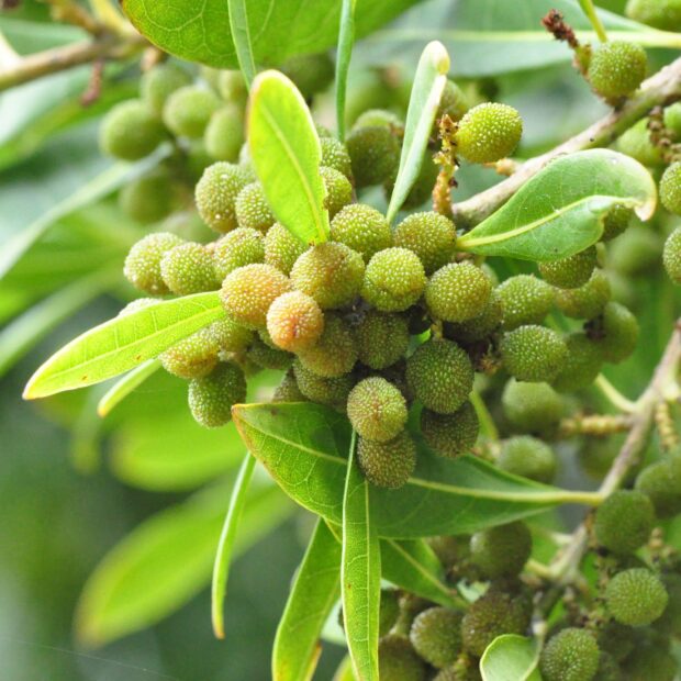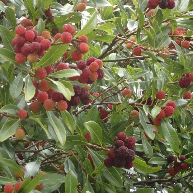 山に生えモモのような果実をつけることから「ヤマモモ」になったといわれています。