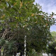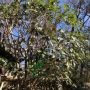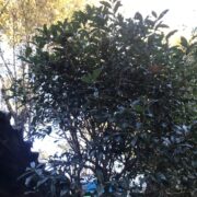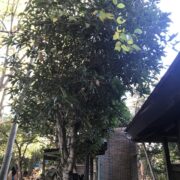キンモクセイの葉はしわが多くて地味なタイプですが、 小さな花はかわいくて香りが良いです。 雄の木しかないですが、 秋に2~3回咲くことがあります。 気候が不安定なときに何度か分けて花を咲かせますが、 オスしかいないので切ないです。 バッサリ切られても切り株から枝を出し、 数年後また咲きます。 割としぶとく、 強い木です。