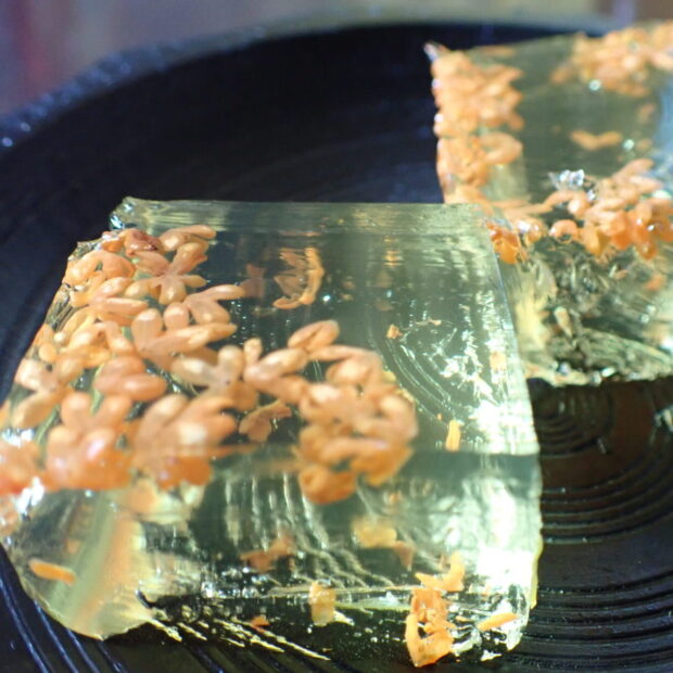 キンモクセイの花は食べられます。 花の味自体はないですが、 花のよい香りを生かすためになるべく熱を加えすぎないのがコツです。 ゼリーに入れるととてもきれいです。