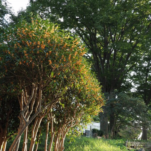 花の香りは、 とても華やかで秋が来たことを教えてくれます。 キノコ狩りをする人はキンモクセイの花の香りからキノコがとれる季節がきたと感じるそうです。