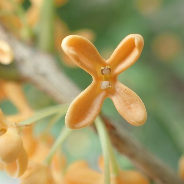 花が金色なので「キン」。 木の皮が動物の犀(サイ)の肌に似ているから金木犀(キンモクセイ)となったと言われています。