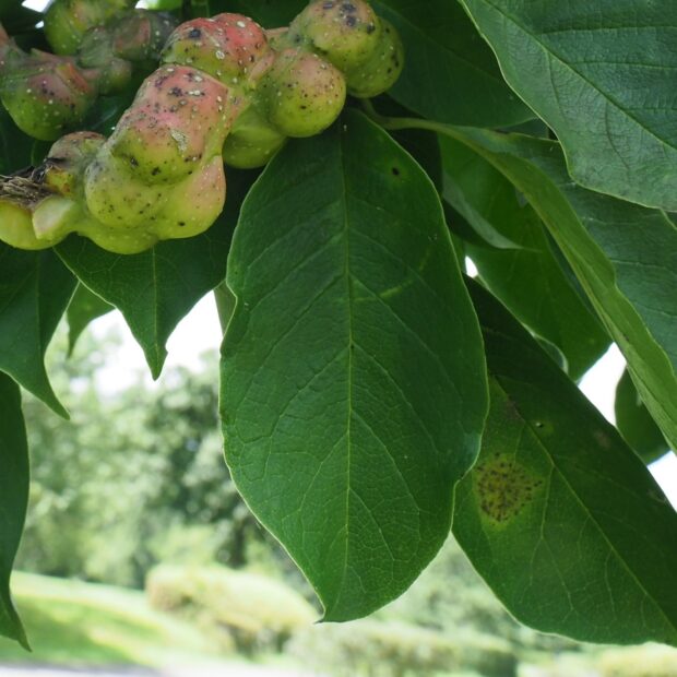 コブシハバチの幼虫が集団で葉を丸坊主にすることがあります。