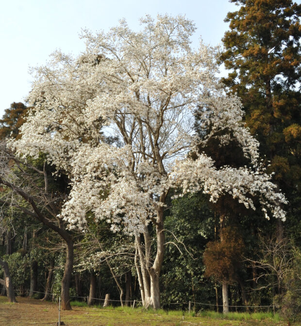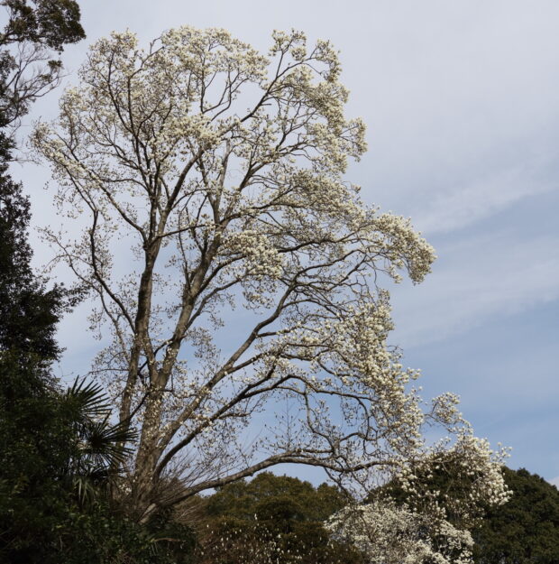 早春、 木いっぱいに咲く白い花はとても目立ちます。