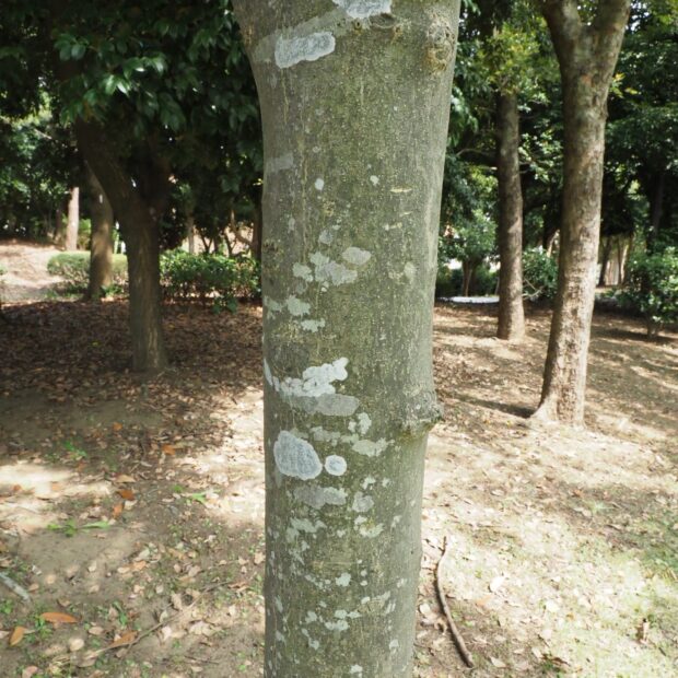 白っぽい樹皮です。 枝は折ると香辛料のようなスーッとする香りがします。