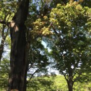 沢山のドングリをつける木です。 ドングリのなる木はがっしりした感じの木が多いですが、 シラカシは葉が小さめでほっそりとしています。 幹は灰黒色で落ち着いた感じです。 そのため庭木としてもよく植えられます。