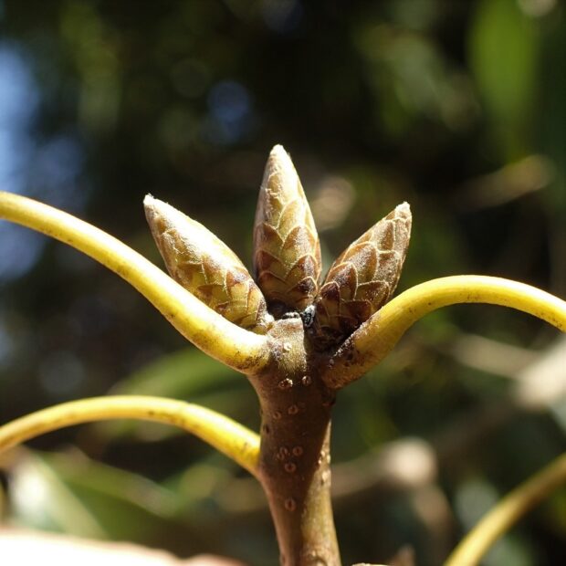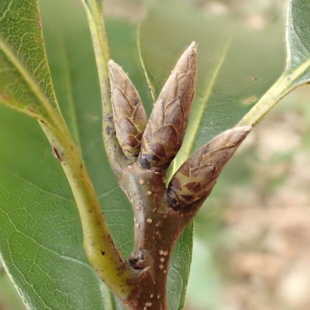 たくさんの芽鱗がきれいに並んでいます。 芽鱗の先が茶色なのでよくわかります。