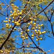 冬に沢山木に残っている実が、 滋賀県の三井寺の千団子祭りの団子のようだから「千団子」→「センダン」になったという説があります。 また、 「オウチ」とか「オフチ」と呼ばれることもあります。
