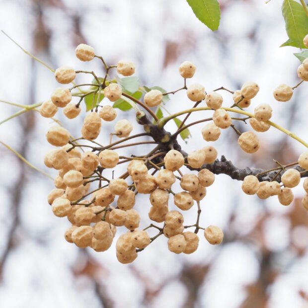 • クリーム色の実がたくさん実る。 潰すとギンナンと似た匂いがする。