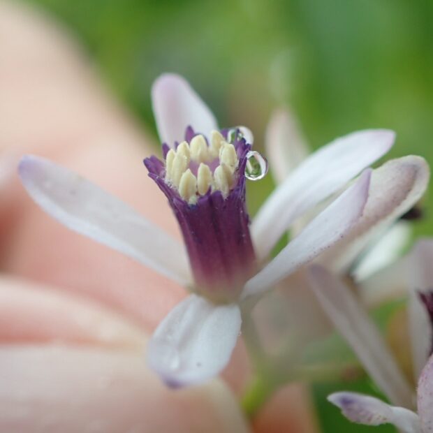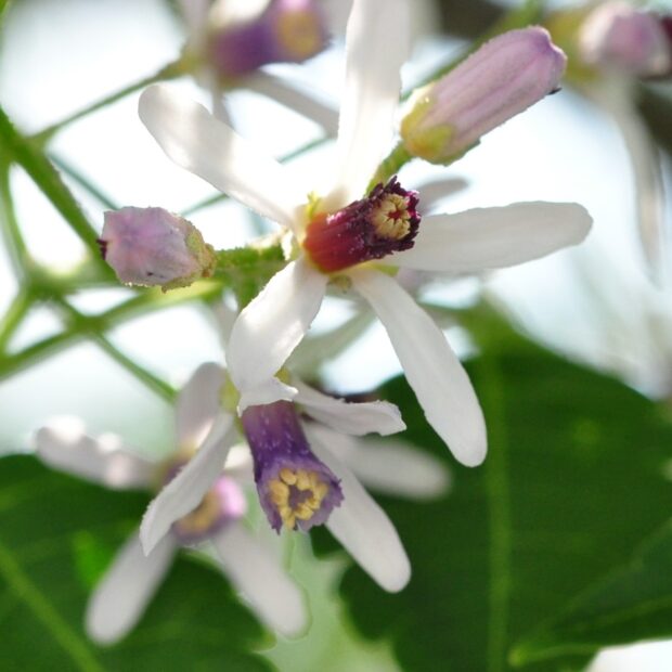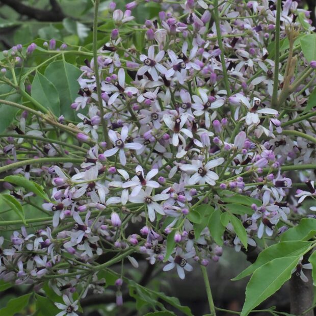 うす紫色の香りのよい花が木全体に咲きます。 博物学者南方熊楠が愛した木として有名です。