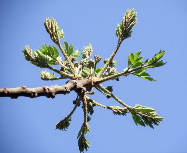 ギザギザの小さな葉がたくさんついた羽状になった葉です。