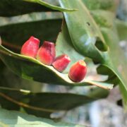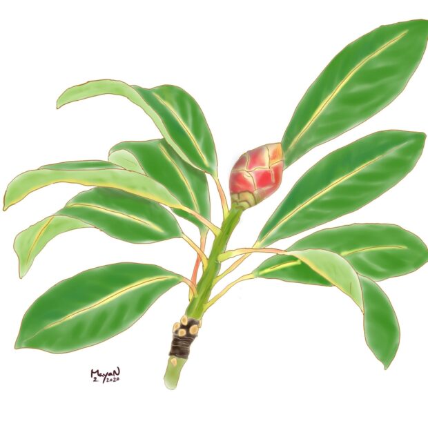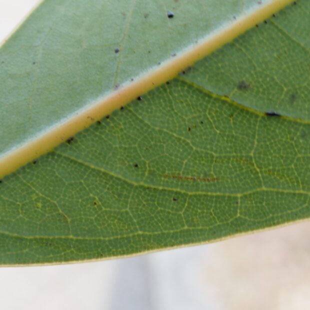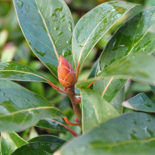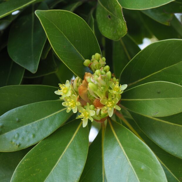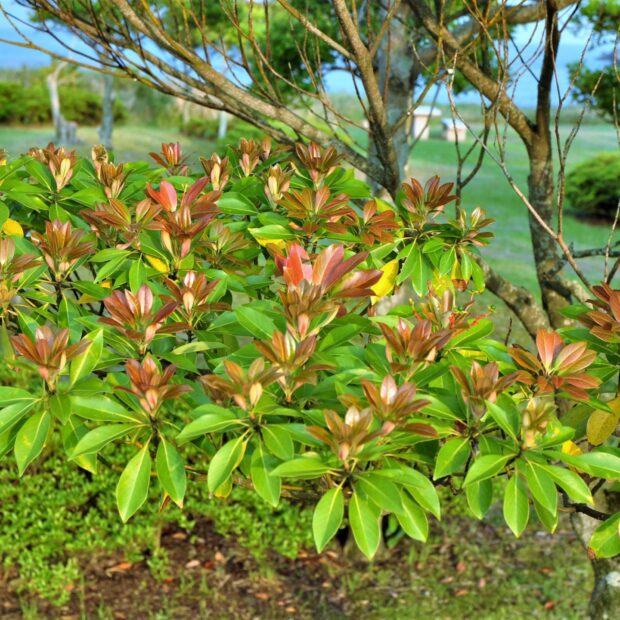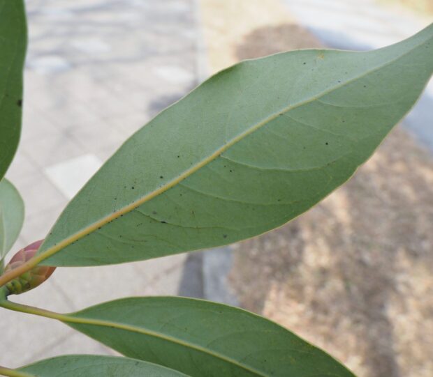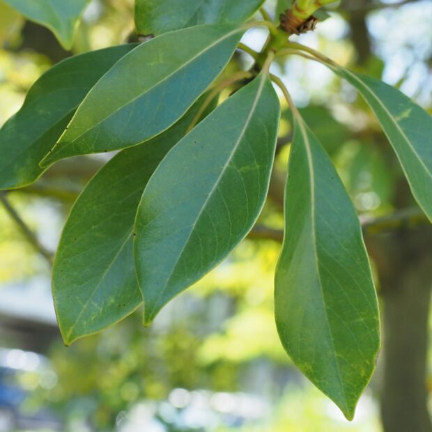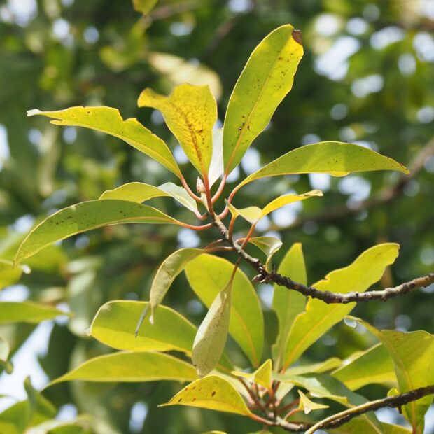 葉の長さは8~15cmで枝先に集まってつきます。 表面は光沢がありツルツルしています。