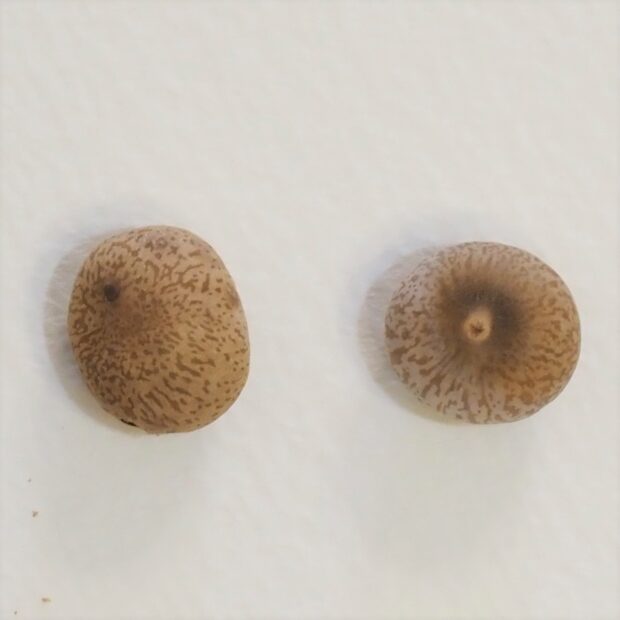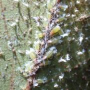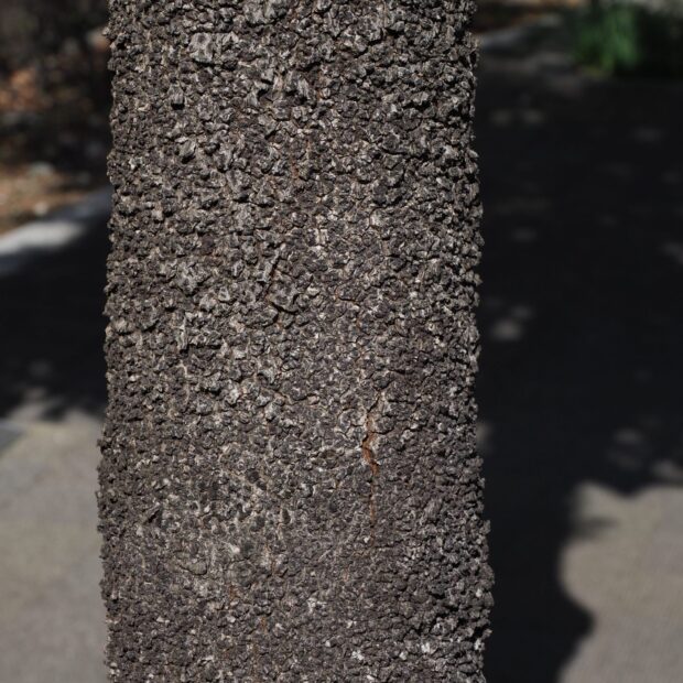 ホシベニカミキリの幼虫がいると、 幹に、 小さな穴、 樹液、 木くずやフンなどが見られます。