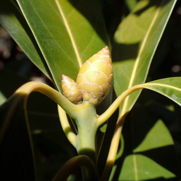 この冬芽は混芽(芽吹いたとき、 花と葉があらわれる芽)です。