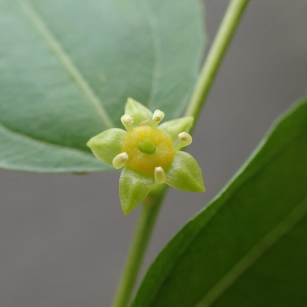 葉っぱの付け根に小さなかわいい花が咲きます。