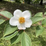 ツバキに似た花を夏に咲かせるのでナツツバキと呼ばれます。